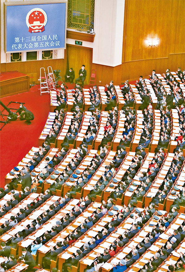 党的十八大以来,人民代表大会制度不断完善。图为2022年3月8日,十三届全国人大五次会议在北京人民大会堂举行第二次全体会议。 新华社记者 金立旺/摄