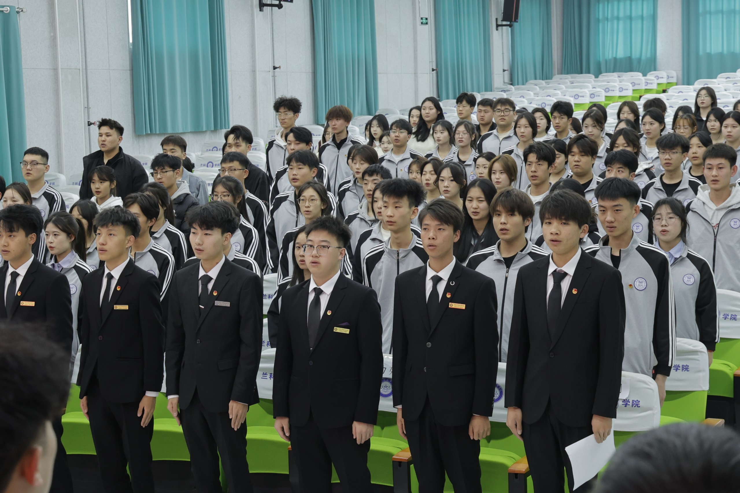 马克思主义学院院长李洁为学院第三期青马班授旗,学员代表上台接受授旗,并代表全体参训学员发言。