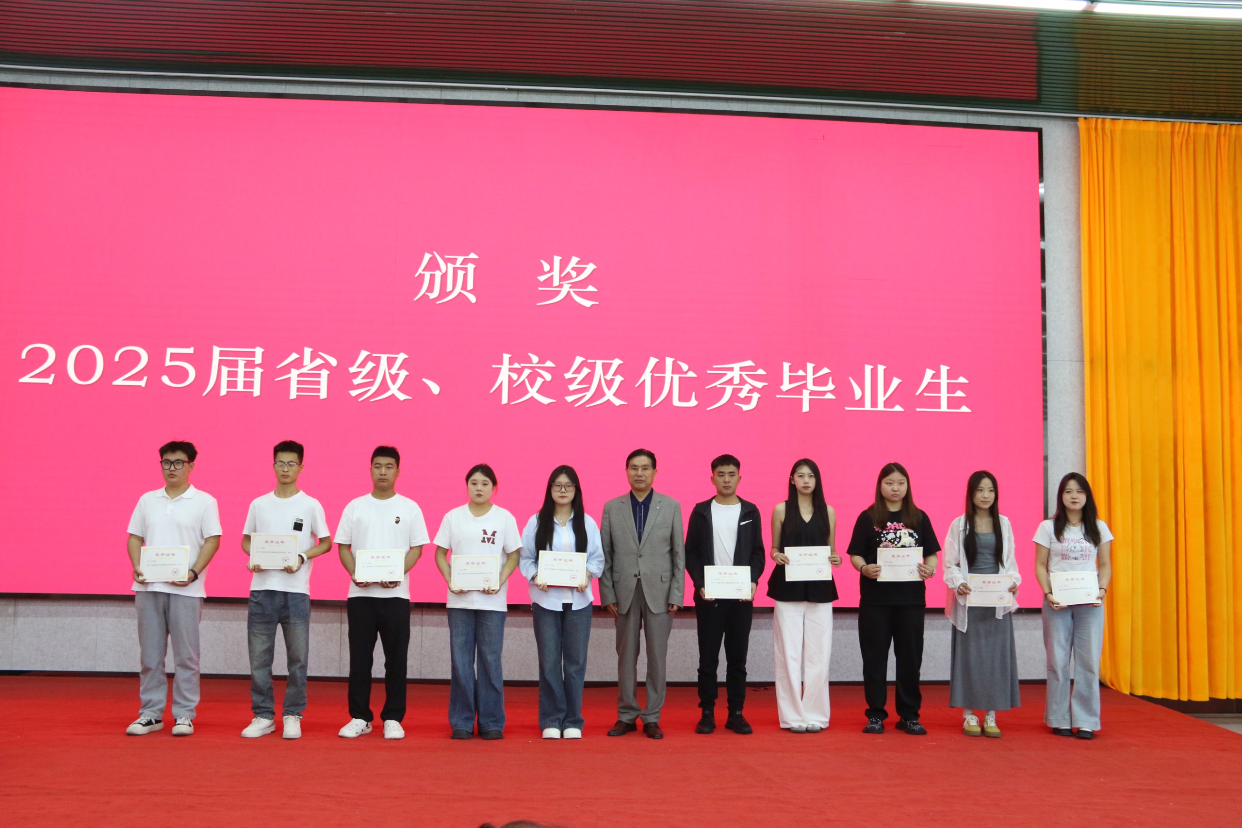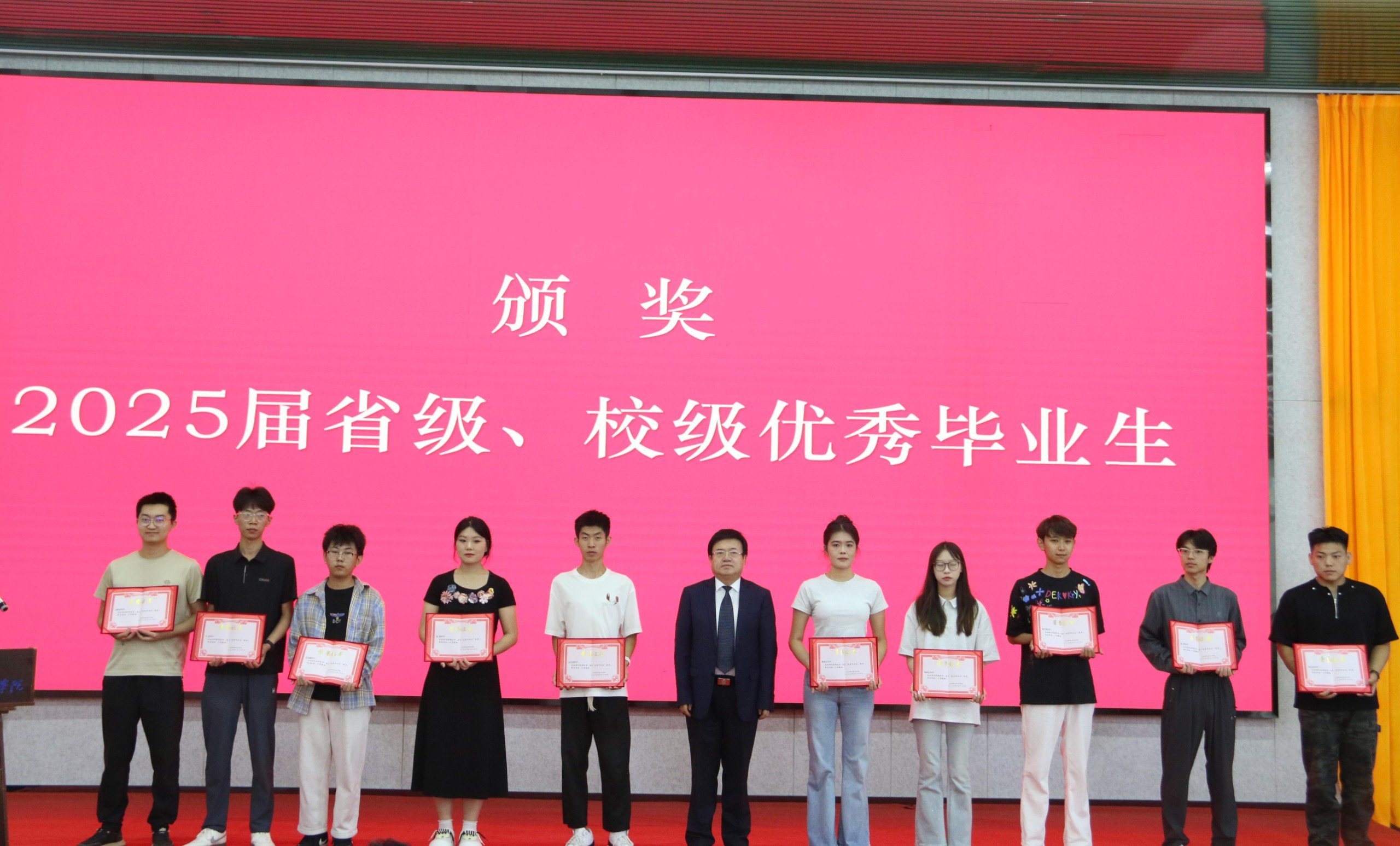 典礼上,学院对表现突出的学生进行了表彰。党委副书记、副院长魏鹏飞宣读了省级、校级优秀毕业生表彰决定,对黄立涛等61名省级优秀毕业生和马文阳等68名校级优秀毕业生进行表彰。