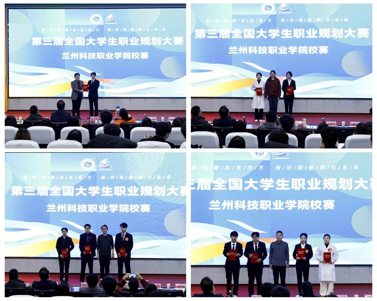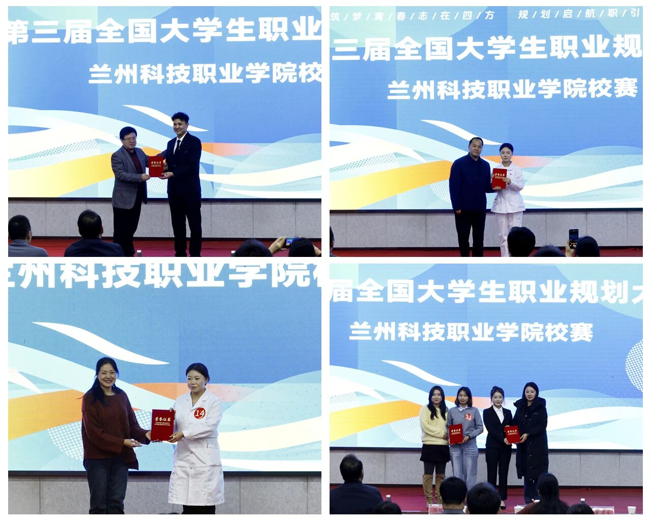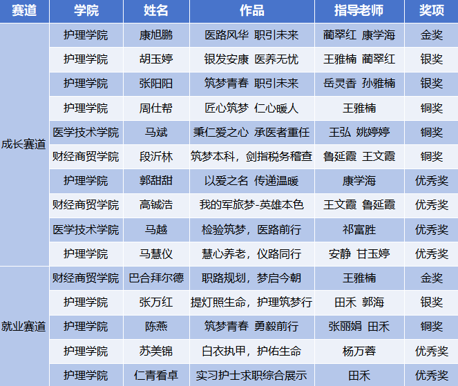 经过评委专业评审,最终成长赛道评选出金奖1名、银奖2名、铜奖3名及优秀奖4名;就业赛道产生金奖、银奖、铜奖各1名及优秀奖2名。随后,学院领导为获奖学生颁奖。