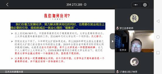 为应对疫情对高校毕业生就业的影响,全面落实中央关于高校毕业生“稳就业、保就业”的目标任务,8月3-8日,学院组织全体2021届毕业生开办了系列云端就业指导讲座。讲座由学院党总支书记王杰文、副书记成夏炎以及学工办关红儒、叶晶、唐瑞鸿、李荣敬等6位老师主讲。