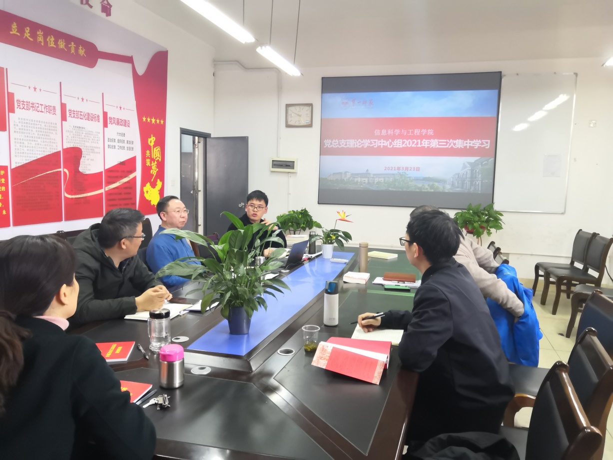 3月23日下午,学院党总支理论学习中心组在玉衡北407举行集中学习,总支委员及院领导参加。会议由党总支书记王杰文主持。