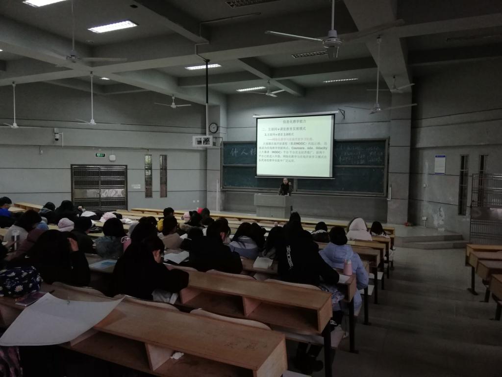 2018年12月25日下午2点,润寰南106教室,何昭青教授为beat36518级787教技班作了一个精彩讲座。 何教授从介绍农业时代到AI时代不同时期段教育技术应用,深入分析互联网+课堂教师模式,以及教育部关于教育信息化建设工作若干文件精神,延伸到今后的工作中,让我们明晰教育技术在教育信息化的地位和作用,明晰教育信息化、教师信息化教学能力的发展及重要性。告诫未来的乡村小学教师,应该立志为乡村教育信息化做出重大贡献。 讲座过程中,何教授亲切幽默的口吻激发了同学们的积极性和求知欲,相信本次讲座对同学们来说是一次极大的帮助,化解同学们心中的疑惑与不解。