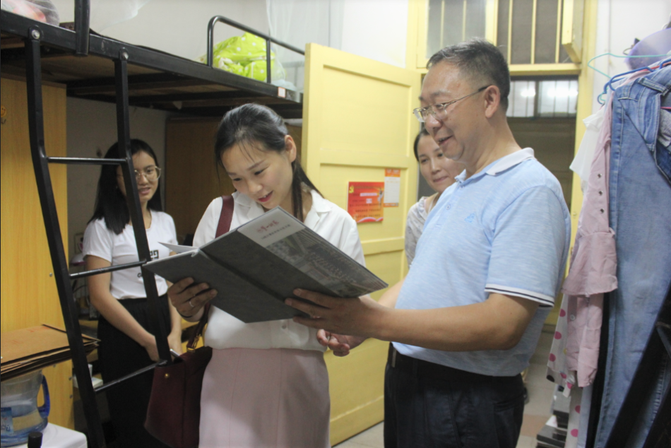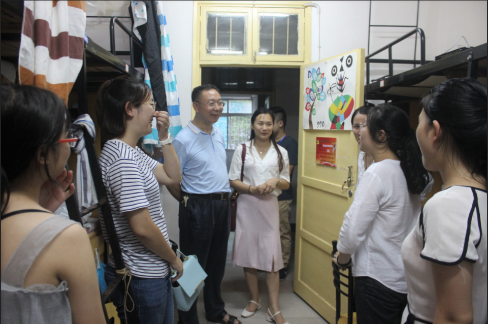 6月22日晚7点,信息科学与工程学院党总支书记王杰文、党总支副书记易利、学工办老师关红儒老师和唐瑞鸿一行走访学院2018届毕业生寝室。