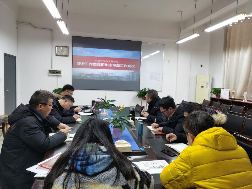 12月9日下午,beat365在会议室召开安全工作暨意识形态专题工作会议,学院领导、党总支委员、三办主任及专职辅导员参加。会议由党总支书记王杰文主持。