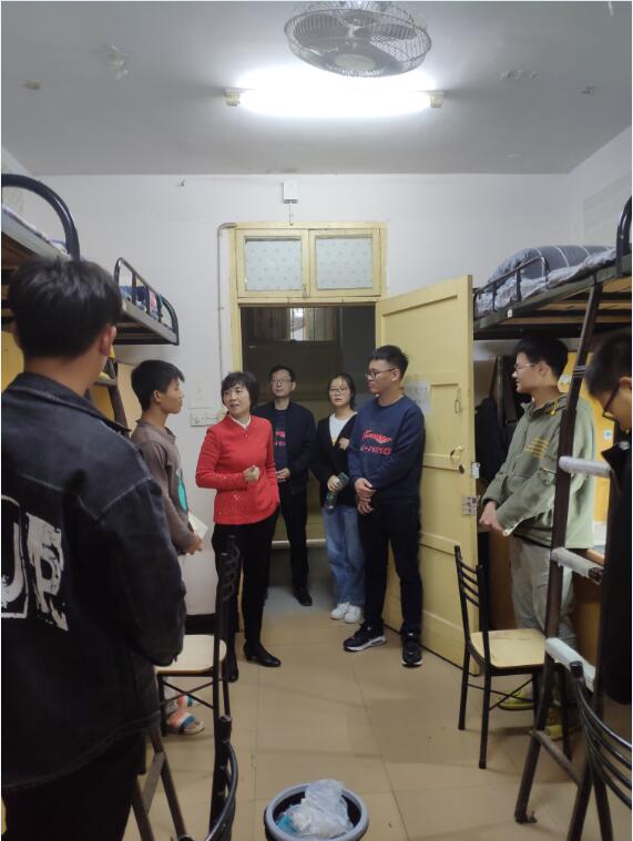 童小娇看到寝室内务整洁,学习氛围浓郁,为同学们竖起了大拇指!童小娇详细询问同学们开学以来的生活学习是否习惯,大学第一天课程有什么感想和收获。她耐心地提醒同学们,要做好寝室学风建设工作、提高学习主动性、珍惜时光保持自律、加强锻炼身体,努力提升自身综合素质,争取德智体美劳全方面发展。
