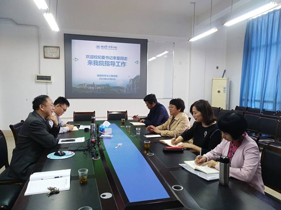 10月8日上午,学校纪委书记李昱来beat365调研。学校纪委副书记、监察处处长袁向荣,监察处副处长陈敬德、禹小英陪同。学院领导王杰文、田祖伟、成夏炎及三办主任、教师代表、学生代表等十余人参加。