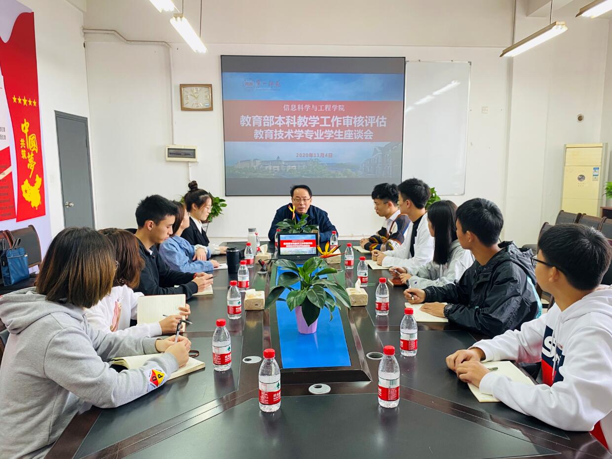11月4日上午,专家组成员、湖北大学教育学院原院长靖国平教授来beat365进行考察,分别与教育技术学专业学生代表、学院领导进行了座谈。