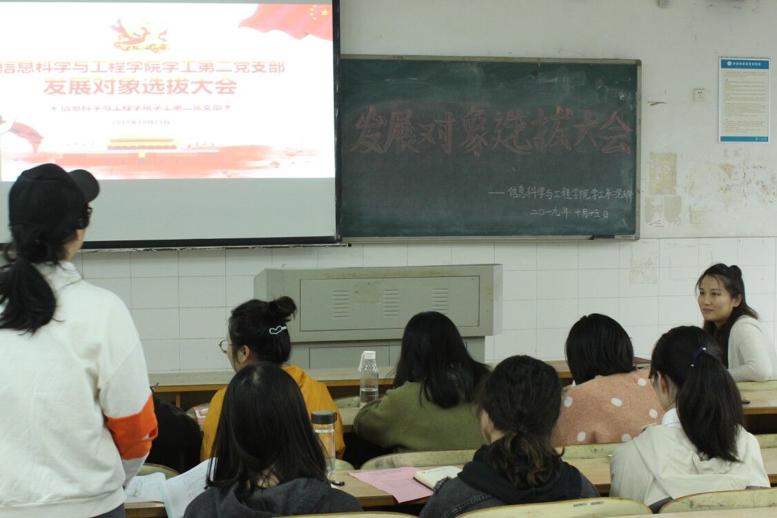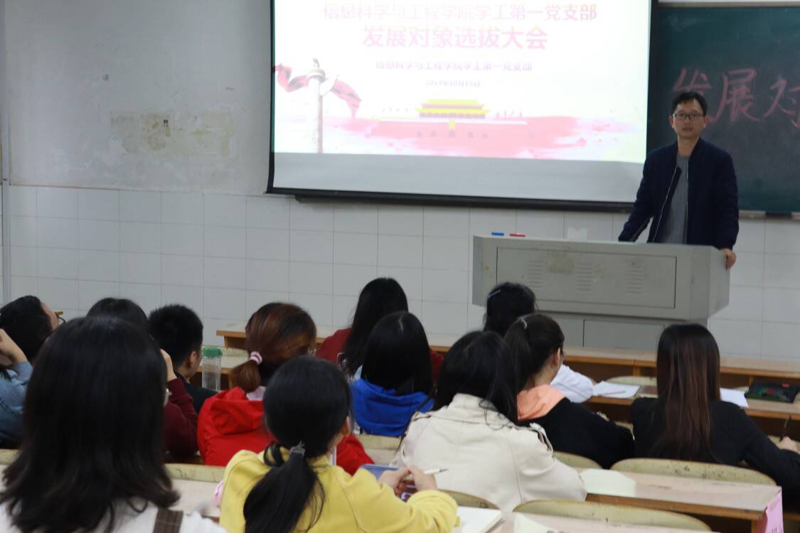(通讯员 邓世骄 蒋郑菊)为进一步落实beat365党组织对优秀人才的选拔工作,深入了解积极分子的思想动态,10月15日下午,信息科学与工程学院学工第一党支部、第二党支部于玉衡楼北栋507、508顺利召开发展对象选拔大会。学工第一党支部书记关红儒同志、学工第二党支部书记唐瑞鸿同志、部分学生党员及33名入党积极分子参加此次会议。