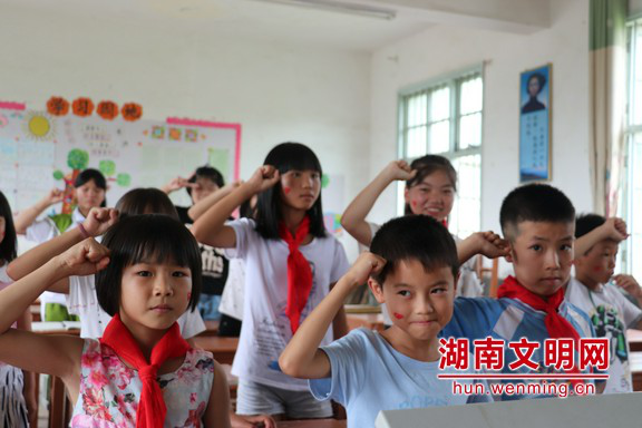 握紧小小的拳头,表达自己保卫母亲河的决心。图片来源:湖南文明网 通讯员 高顺年 摄 beat365在线唯一官网信息科学与工程学院师生18人组成“新时代E路行”教育帮扶关爱团赴郴州市汝城县文明瑶族乡第一片小学校,于7月8日至7月21日开展支教、调研实践活动。 为庆祝中国共产党成立97周年、纪念改革开放40周年,深化农村儿童思想道德建设,帮助其“扣好人生的第一粒扣子”,新航向梦之队于7月13日至7月21日开展了以“童心向党”为主题的系列课程,涵盖“五星红旗”美术课、“红旗飘扬”手工课、“红色少年”舞蹈课、“红星闪闪”音乐课和“歌颂母亲河”普通话课引导农村儿童知党爱党、听党话跟党走,努力成长为担当民族复兴大任的时代新人。 “五星红旗”美术课和“红旗飘扬”手工课上,队员为孩子们讲解国旗故事,带领大家一起手绘国旗,让他们领会五星红旗背后的意义,将革命传统文化搬进课堂。 “红色少年”舞蹈课和“红星闪闪”音乐课上,队员介绍了五星红旗的诞生和含义,带领孩子们用舞蹈动作和歌声表达自己对“五星红旗”的崇敬之情,在孩子们幼小的心灵上种下一棵爱旗爱党的种子引导孩子们爱党、敬党。 在普通话课上,队员带领孩子们声情并茂的朗诵诗歌《母亲河,红领巾为你歌唱》,同学们用清晰的语言,响亮的声音,加上老师引入的动作,把诗歌有感情地表达出来,准确的传达诗歌的思想内容。 此次红色主题课程活动,新航向梦之队队员们围绕“童心向党”,紧扣爱党爱国爱社会主义主题,通过美术、手工、舞蹈、音乐和普通话课等丰富多彩的红色主题课程,寓教于乐引导农村儿童德、智、体、美、劳全面发展,培养农村儿童心向党、跟党走的坚定信念。 |