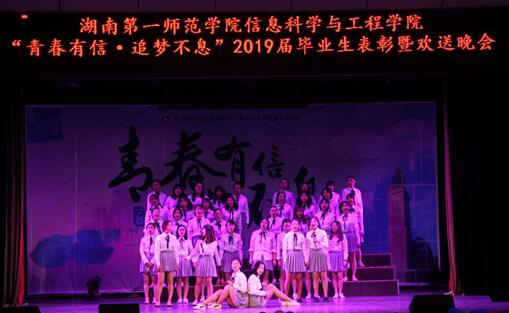离歌未央,再续华章。本次晚会在欢声笑语中落下帷幕,今夜不说再见,离别不是终点。满载着学识与对未来的期待,又一批信工学子即将迈出一师大门,走向另一片广阔的新天地。在此愿2019届毕业生们永葆青春梦想,在以后的漫漫人生路中,一路披荆斩棘,到达理想彼岸!
