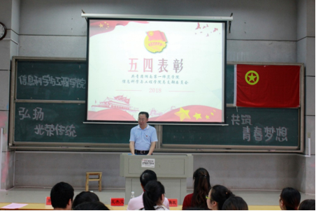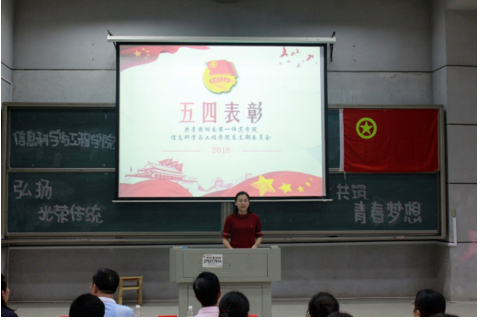 (通讯员 唐瑞鸿 赵越 罗德琳)5月16日晚,共青团beat365在线唯一官网信息科学与工程学院2017-2018学年总支部委员会工作总结暨五四表彰大会在玉衡楼报告厅(二)举行。校长助理、信息科学与工程学院院长李勇帆、学院党总支书记王杰文、党总支副书记易利、团总支书记唐瑞鸿出席会议,2017-2018届全体学生干部及助理,各班级学生代表共计200余人参加此次会议。