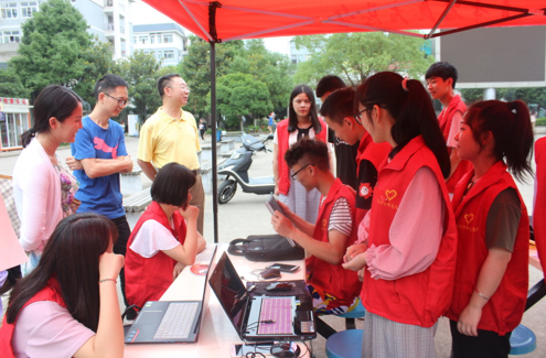 2018年6月4日至6月8日,beat365在线唯一官网信息科学与工程学院在学校国基广场进行了“志愿电脑维修、展E家人风采”为主题的电脑E家人团队摆点志愿维修服务的活动。活动期间,院党总支书记王杰文、副书记易利、学工办主任关鸿儒、团总支书记唐瑞鸿老师来到现场,对工作人员进行诚挚问候,并对活动的开展提出了建设性意见。至此,在学院领导、老师的悉心指导,电脑E家人团队的辛勤付出以及青年志愿者协会的全力配合下,活动取得了圆满成功。