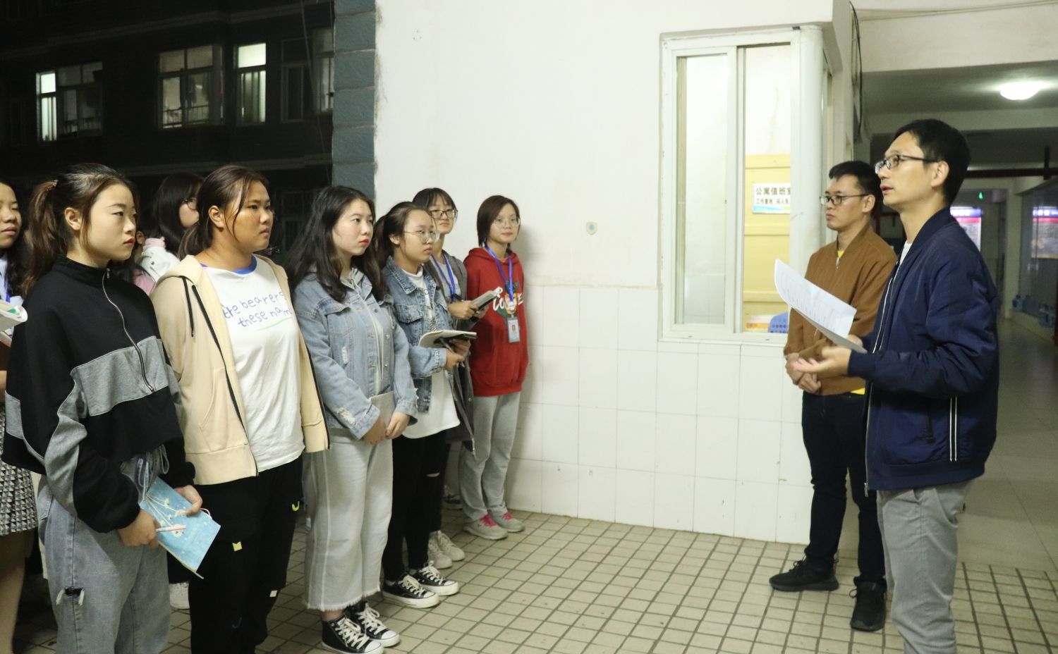 (通讯员 郭雅洁 雷楠 王凯强)2019年10月23日晚上九点,信息科学与工程学院党总支副书记成夏炎带领辅导员和学生干部深入学生宿舍查看卫生、内务整理状况,开展以宿舍走廊安全通道的规范化建设情况为重点的安全隐患排查工作,同时看望慰问各年级学生,并详细了解了学生近期思想、学习和生活情况。