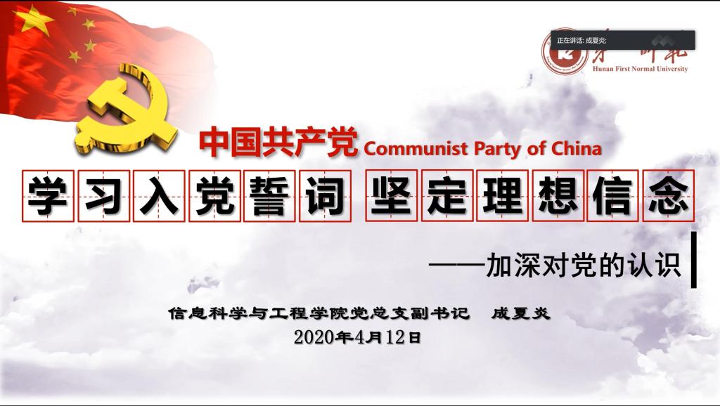 (通讯员 蒋郑菊 邓世骄)4月12日19时,beat365党总支副书记成夏炎通过腾讯会议平台,以“学习入党誓词,坚定理想信念——加深对党的认识”为主题,为beat365分党校和数学与计算科学学院分党校联合举办的第二十四期入党积极分子培训班的学员上党课。