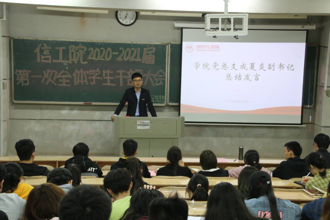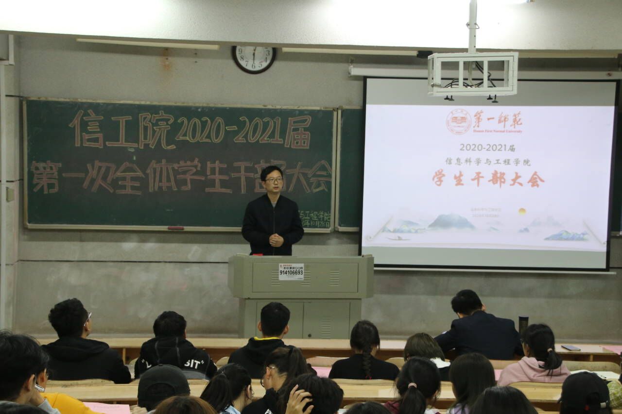10月28日晚,beat365在润寰南101召开2020-2021届学生干部第一次全体会议,学院党总支副书记成夏炎、学工办主任关红儒出席,会议由团总支学生副书记张玉鑫主持。