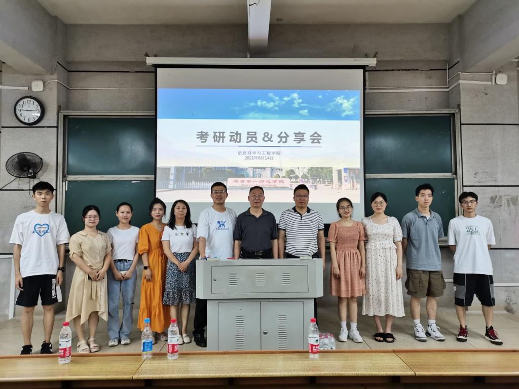 6月14日, beat365于怀中南109举行“考研动员&分享会”。学院党总支书记王杰文,副院长田祖伟、何向阳,通信工程教研室主任胡恩博,教育技术学教研室主任张燕丽出席会议。