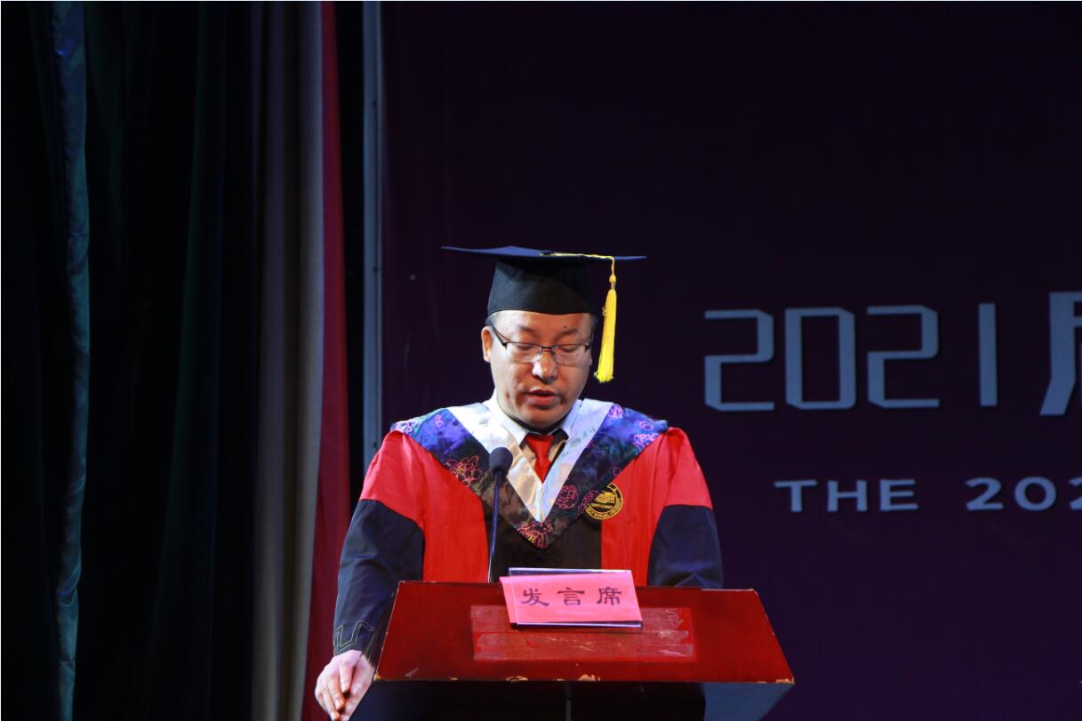 随后,副院长田祖伟宣读《关于授予邓可意等4065名本科毕业生学士学位的决定》;副院长何向阳宣读《关于表彰beat365在线唯一官网2021届优秀毕业生和创新创业优秀毕业生的通报》;党总支副书记成夏炎宣读《关于王思洁等20位毕业生考取硕士研究生的贺信》。