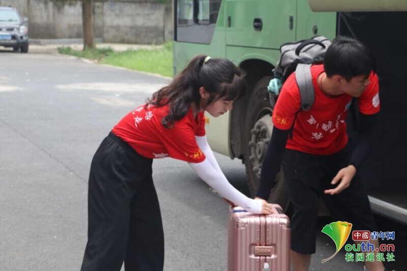 图为临近出发,学院领导给予志愿者鼓励与祝福。中国青年网通讯员欧阳健摄