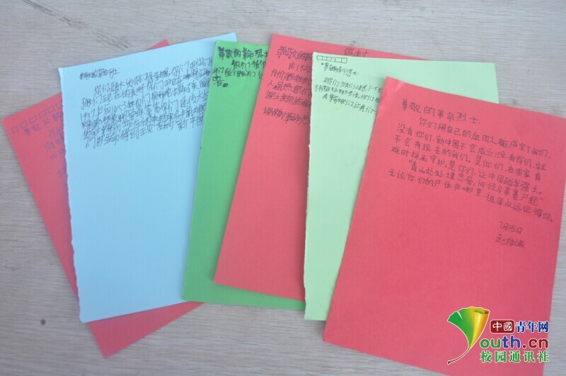 图为孩子们上完红色趣味故事课后有感而发写给发革命战士的信件。中国青年网通讯员 欧阳健 摄