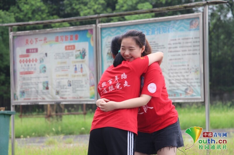 图为新航向·梦之队队员们拥抱在一起,互相鼓励激励彼此。中国青年网通讯员 邹诗琪 摄