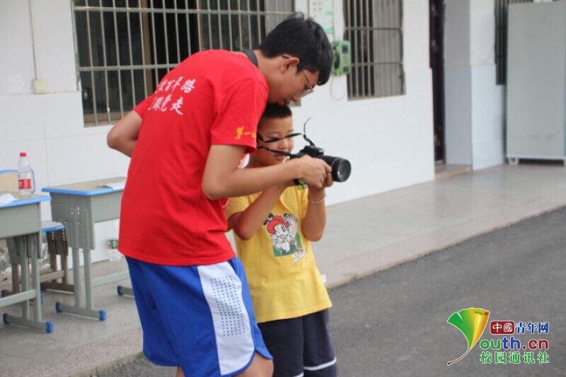 图为新老师耐心地指导对摄影感兴趣的学生使用摄影机,稚嫩的脸庞充满了兴奋。中国青年网通讯员 段新利 摄