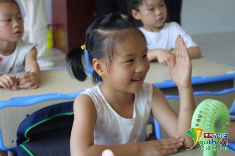 图为小朋友积极举手询问老师有关红色故事的问题。中国青年网通讯员 欧阳健 摄
