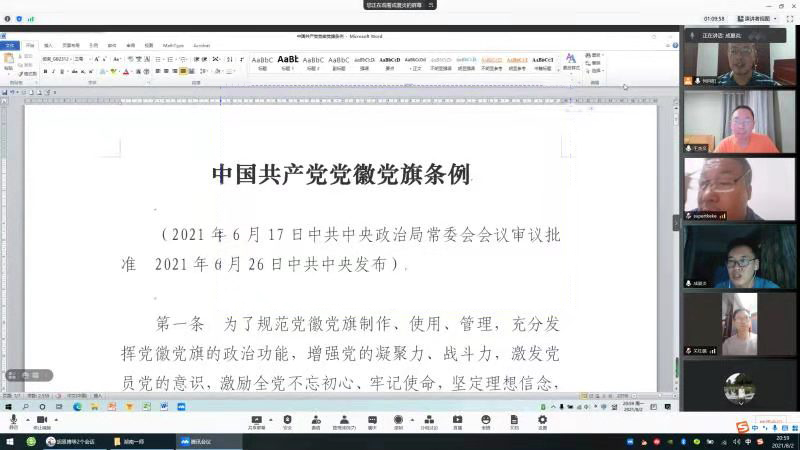 党总支副书记成夏炎带领中心组全体成员学习了2021年6月26日发布的《中国共产党党徽党旗条例》。通过学习,大家深刻地认识了党徽党旗的精神内涵,明确了党徽党旗的制作、使用和管理规范;与会人员认为,全体党员特别是领导干部要坚定理想信念,提高政治站位,不断提升党性修养,将贯彻落实《条例》变成思想自觉和行动自觉,充分发挥党员先锋模范作用,团结带领广大师生在党的旗帜下不忘初心、牢记使命,增强凝聚力、战斗力,奋勇迈向全面建设社会主义现代化国家的新征程。