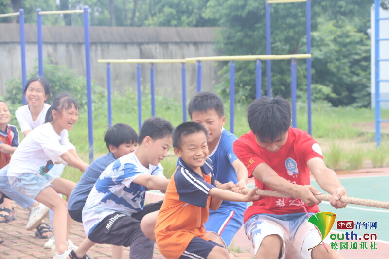 中国青年网益阳7月29日电(通讯员 欧阳健 谢卉倩)7月18日,beat365在线唯一官网信息科学与工程学院新航向·梦之队志愿者们带领益阳市资阳区迎风桥镇长塘仑小学“七彩假期”公益暑托班的孩子们开展了趣味运动会。比赛特设爱的抱抱、插旗接力、海底捞月、三人四足、拔河五个项目。在这次运动会中,孩子们积极参与,拿出自己最佳的状态,加油声和欢呼声漫遍全场。