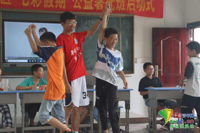 图为“耶!我们赢了。”老师宣布小黄人组获胜后,学生们激动地跳了起来。中国青年网通讯员 段新利 摄