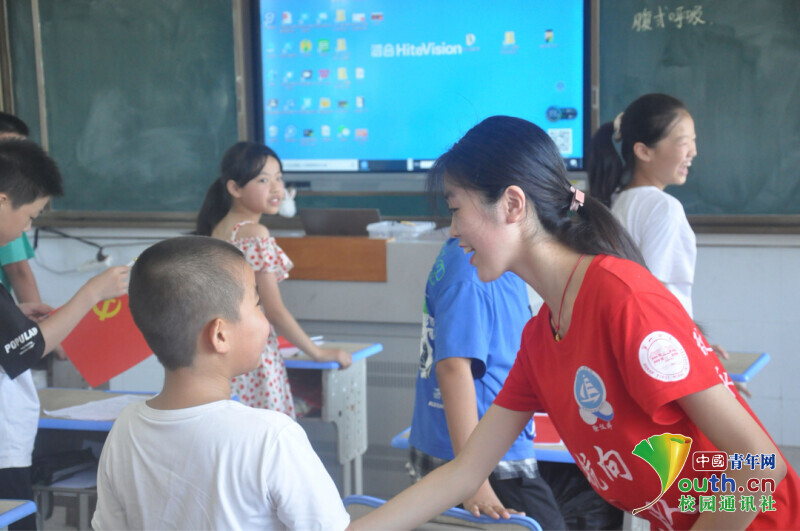 中国青年网益阳8月3日电(通讯员 谢卉倩 周泰成)7月19日,beat365在线唯一官网信息科学与工程学院新航向·梦之队走进益阳市资阳区迎风桥镇长塘仑小学,与当地团委联合举办的“七彩假期”公益暑托班已经历九天的多彩生活。语言是人与人之间交流的桥梁,是维持人与人之间情感的纽带,它是日常生活中不可或缺的一部分,凝聚着无数人的智慧。为让贫困山村的留守儿童先从语言上“立起来”,推进当地乡村振兴,特开展普通话推广课程。 同时,以学习红色精神为主题,引导学生树立“感党恩,跟党走”的理想信念,培养学生爱党爱国的情怀。