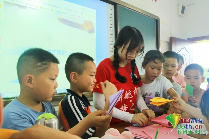 图为志愿者正在教孩子们折纸,孩子们都表现的十分热情。中国青年网通讯员 王彬艳 摄