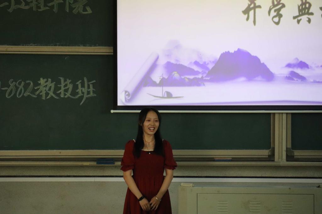 典礼上,学工办关红儒老师简单介绍了学院师资情况与建设发展进程。伴随着学院焕然一新的设施更新,面对着新生们精神昂扬的面貌,无限期望与美好祝愿已然而至。