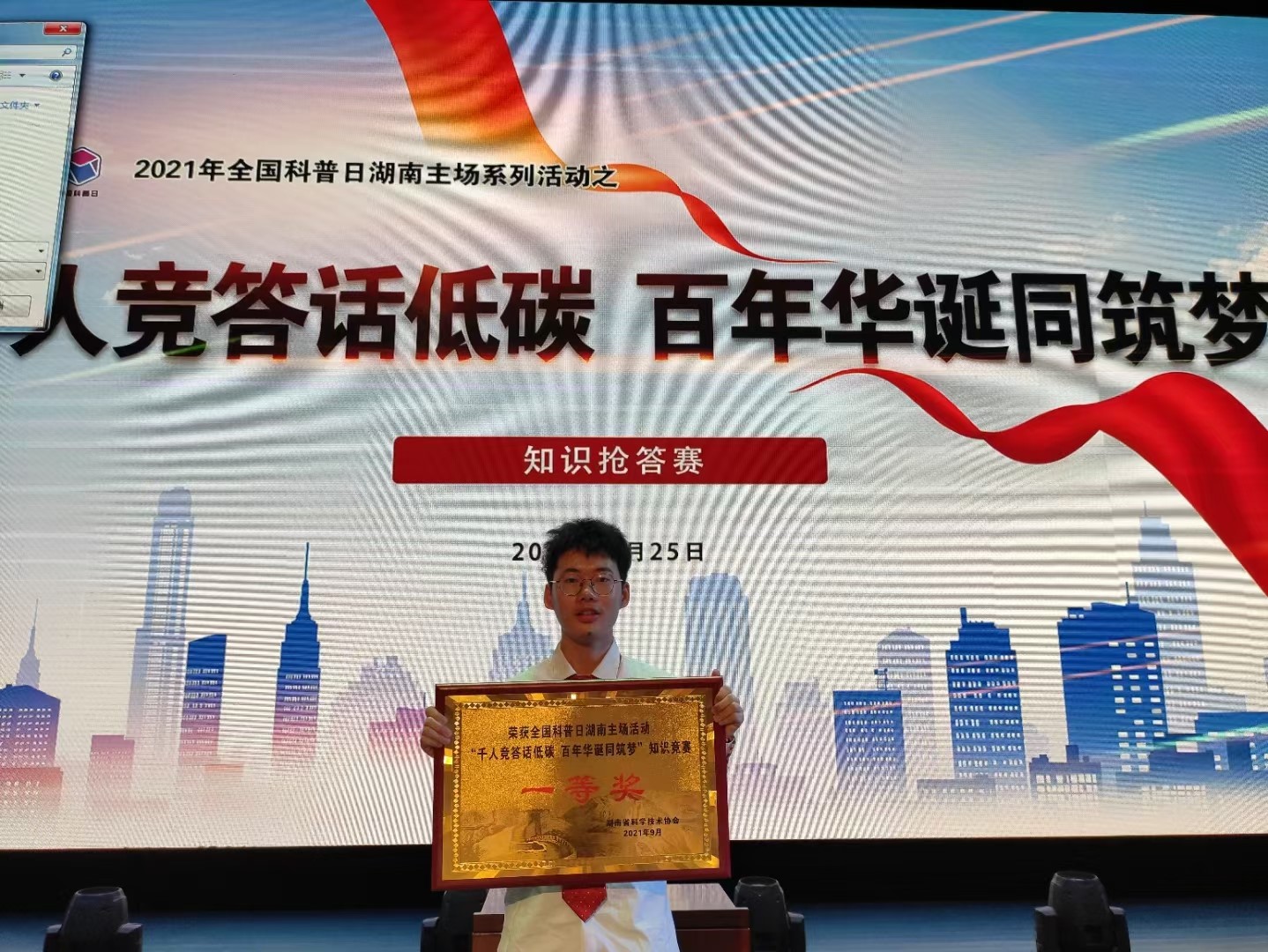 为向建党100周年献礼,湖南省科协于9月16日-25日在我校举办了科普日系列活动,包括科普演讲比赛、科普知识竞赛和科普征文比赛。在知识竞赛和演讲比赛活动中,beat36521级881教技班代表队和20级849教技班代表分别取得了一等奖和二等奖的好成绩。