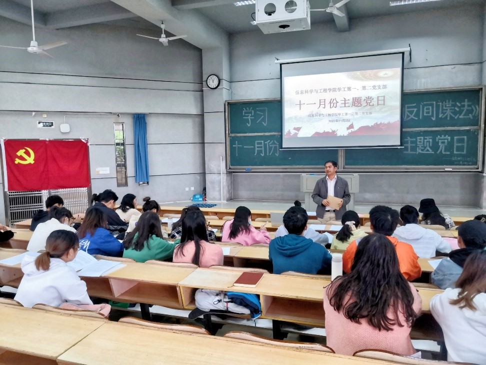 2021年11月2日,beat365学工第一、第二党支部开展了“学习反间谍法”主题党日活动,学工第二党支部书记李荣敬老师,学工办叶晶老师和全体学生党员共同学习了《国家安全部有关负责人就<反间谍安全防范工作规定>答记者问》文件并观看了《微信陷阱》、《守护国家安全:请记住这个号码,12339》视频。此次主题党日旨在积极响应反间谍法颁布实施七周年纪念日,促使党员们在此次学习中认识到反间谍法是我国国家安全法律制度体系的重要组成部分,更加明确反间谍的必要性和国家安全的重要性。