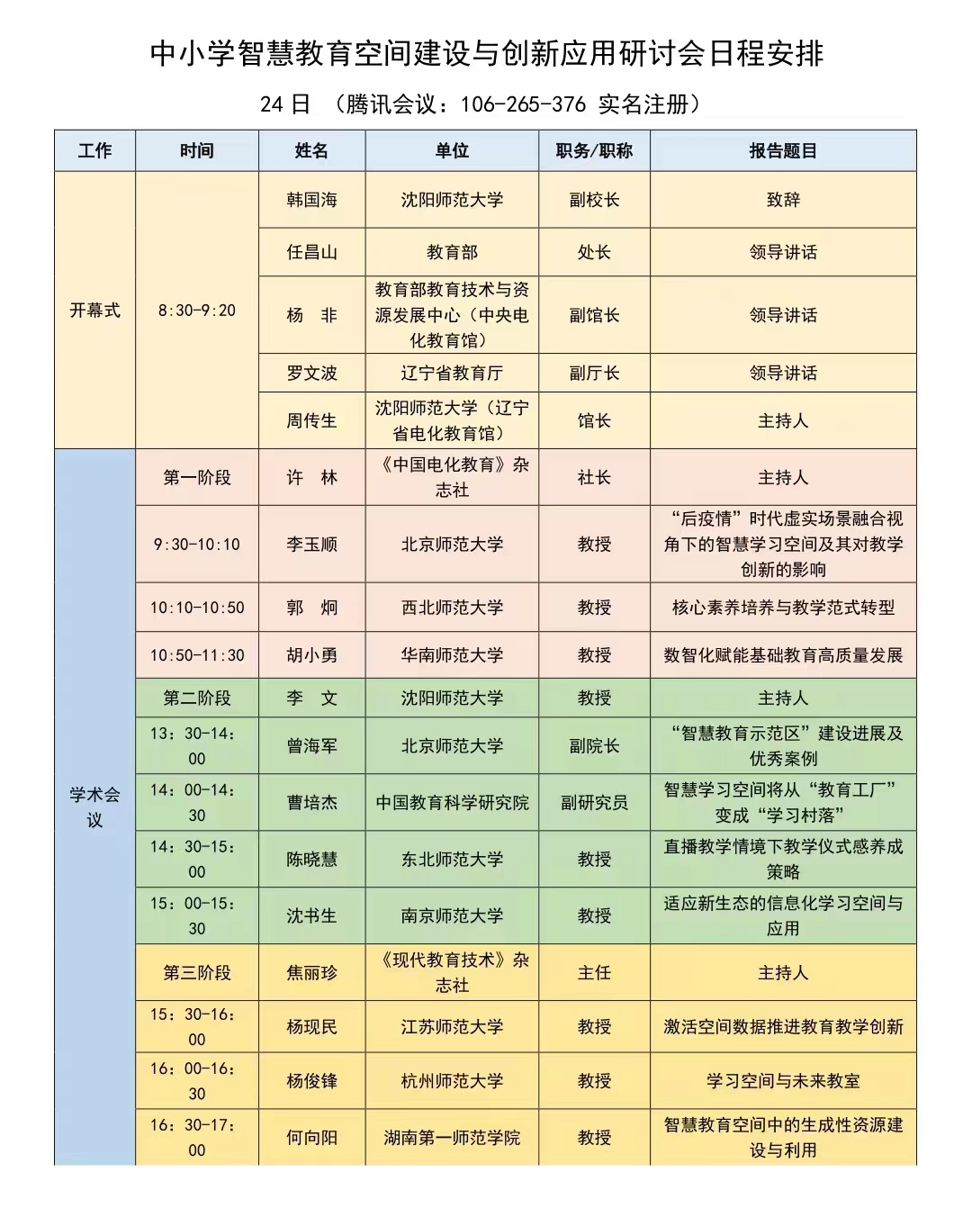 9月24日-25日,由辽宁省教育厅组织、沈阳师范大学主办、辽宁省电化教育馆和辽宁省基础教育信息化研究中心协办的“中小学智慧教育空间建设与创新应用研讨会”在腾讯会议召开。来自全国各大高校的数十位专家和数百位基础教育信息化工作者参加会议,beat365何向阳教授在大会上作了题为“智慧教育空间中的生成性资源利用研究”的大会报告。