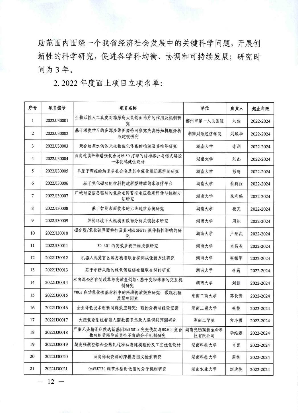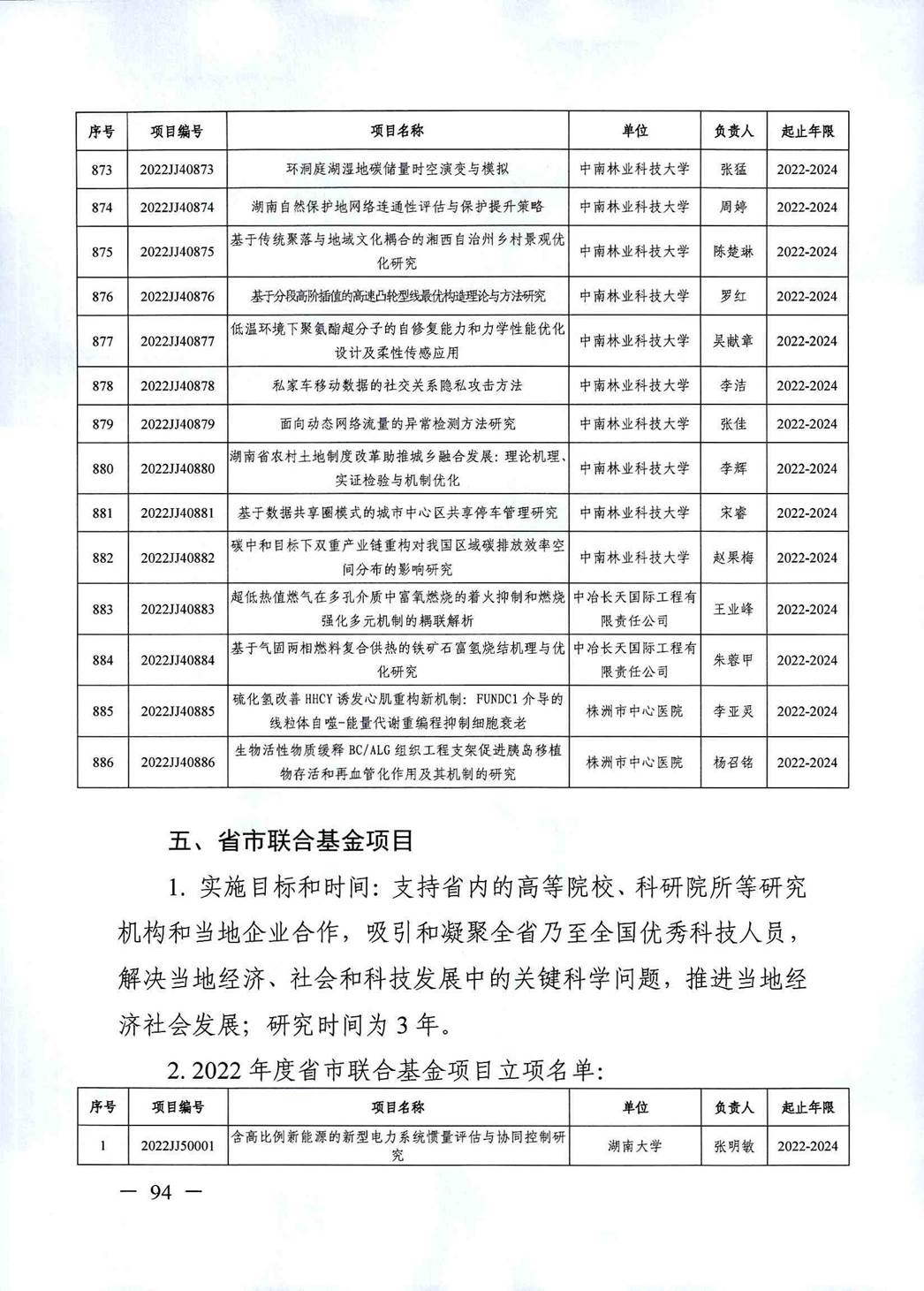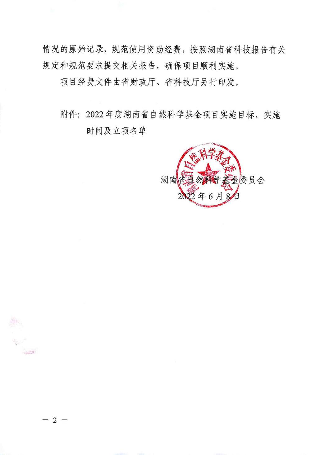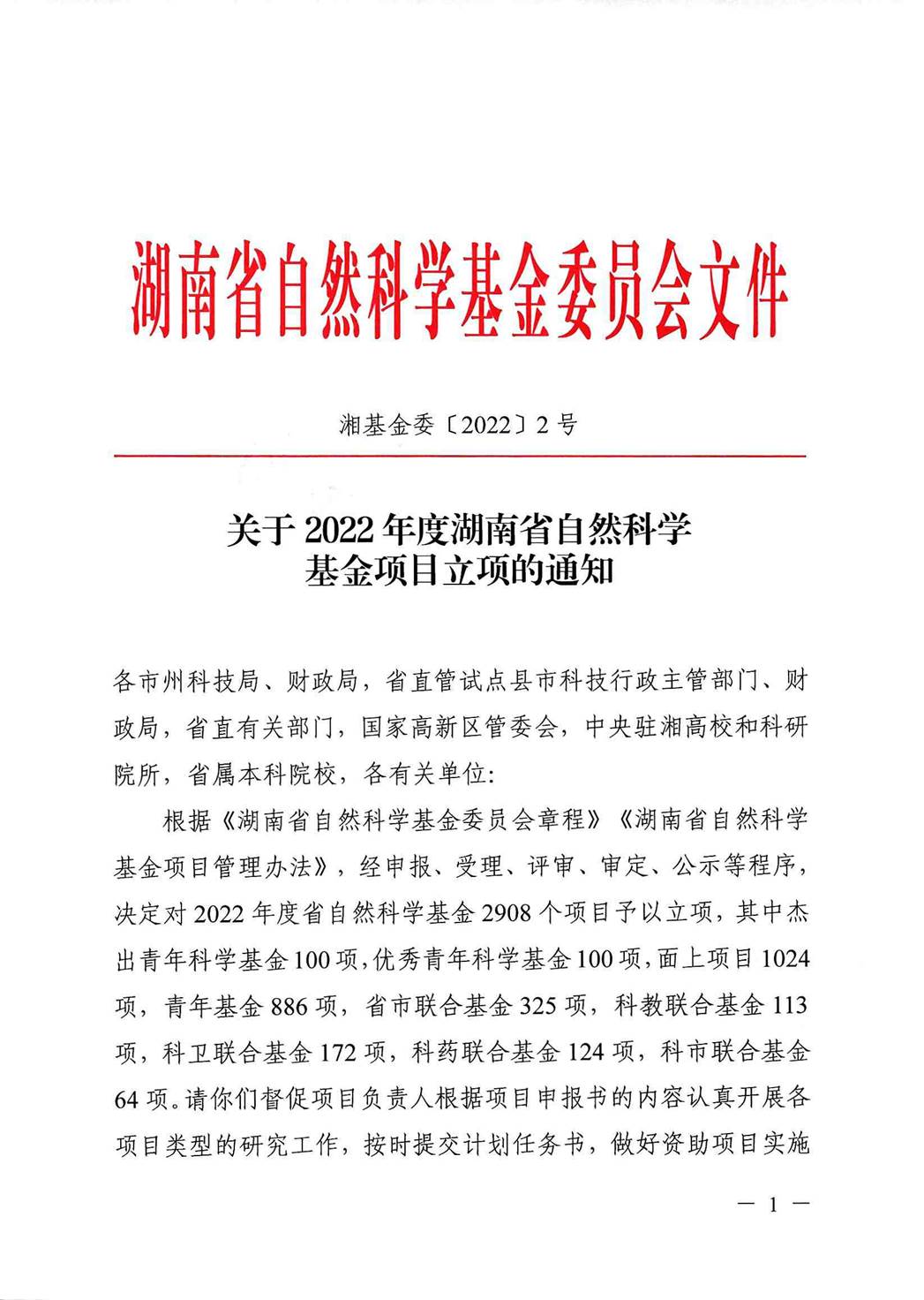 【立项通知】 关于2022年度湖南省自然科学基金项目立项的通知