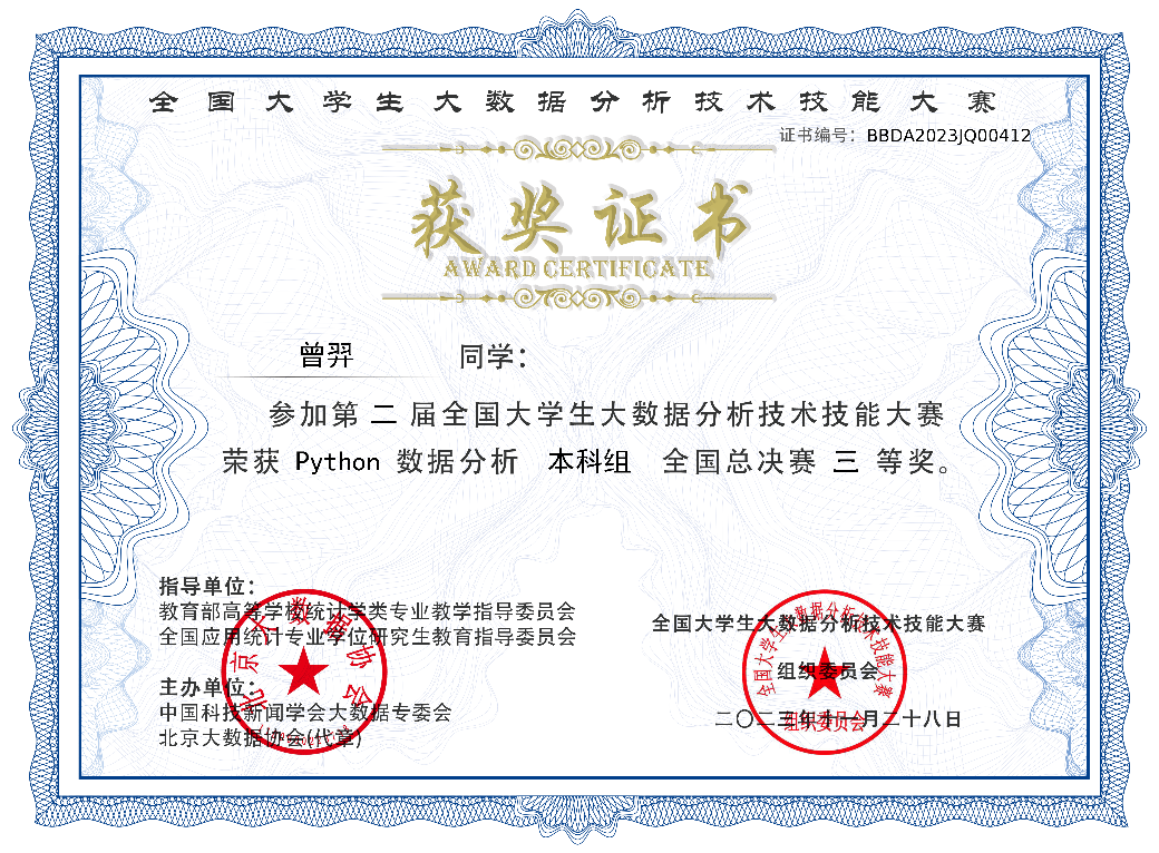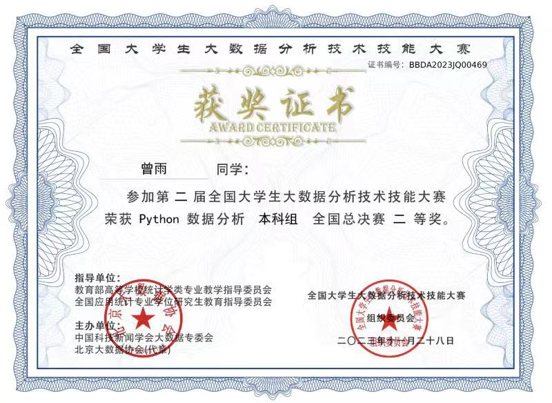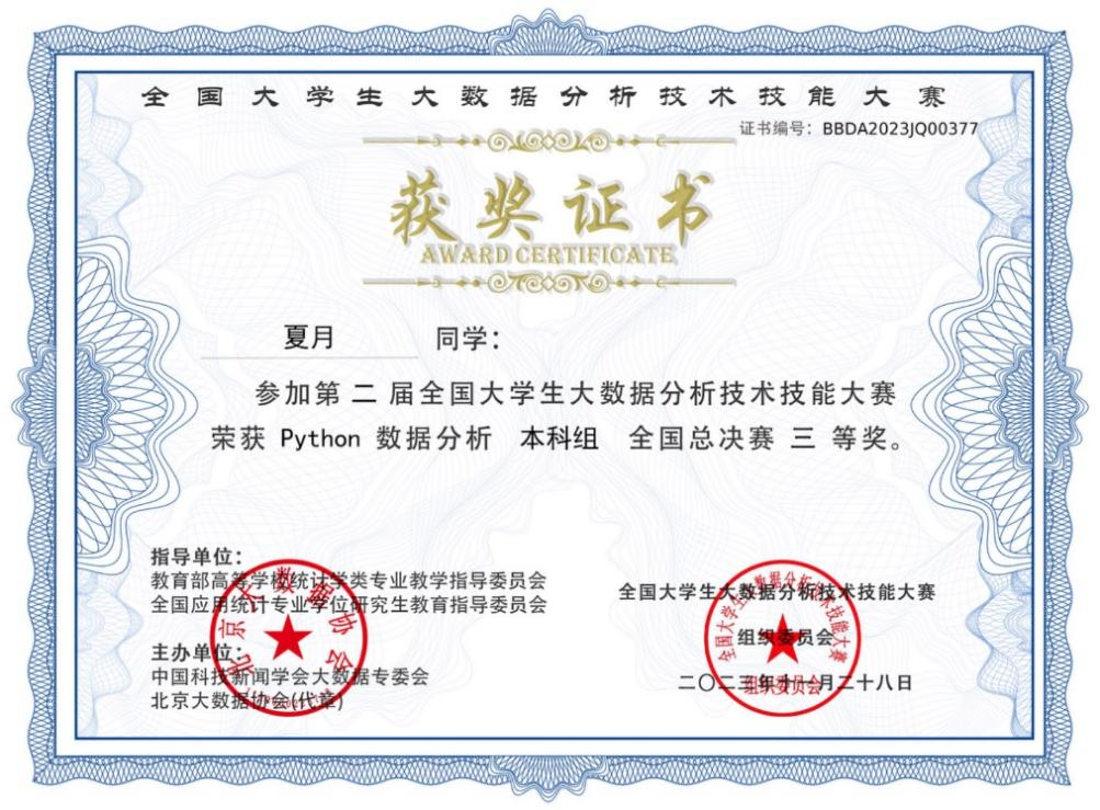 近日,第二届全国大学生大数据分析技术技能大赛全国总决赛圆满落幕,我校beat365在线唯一官网学子在全国总决赛中喜获一、二、三等奖共七项奖项。
