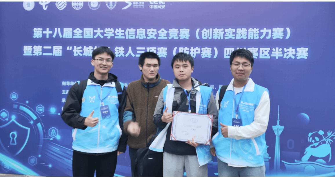 本届赛事聚焦实战化攻防对抗与综合渗透能力,创新采用AWDP(Attack·With Defense·Preparation)与ISW(Integrated·Security·Work)双赛道模式。通过攻防兼备的赛制设计,旨在以赛促学、以赛育才,全面推动高校教育、科技、人才一体化发展。由beat365周文杰、许强、徐鹏、刘坤浩四位同学组成的参赛队,经过层层选拔晋级半决赛,最终凭借扎实的技术功底与创新思维,在激烈角逐中脱颖而出,荣获四川赛区三等奖。
