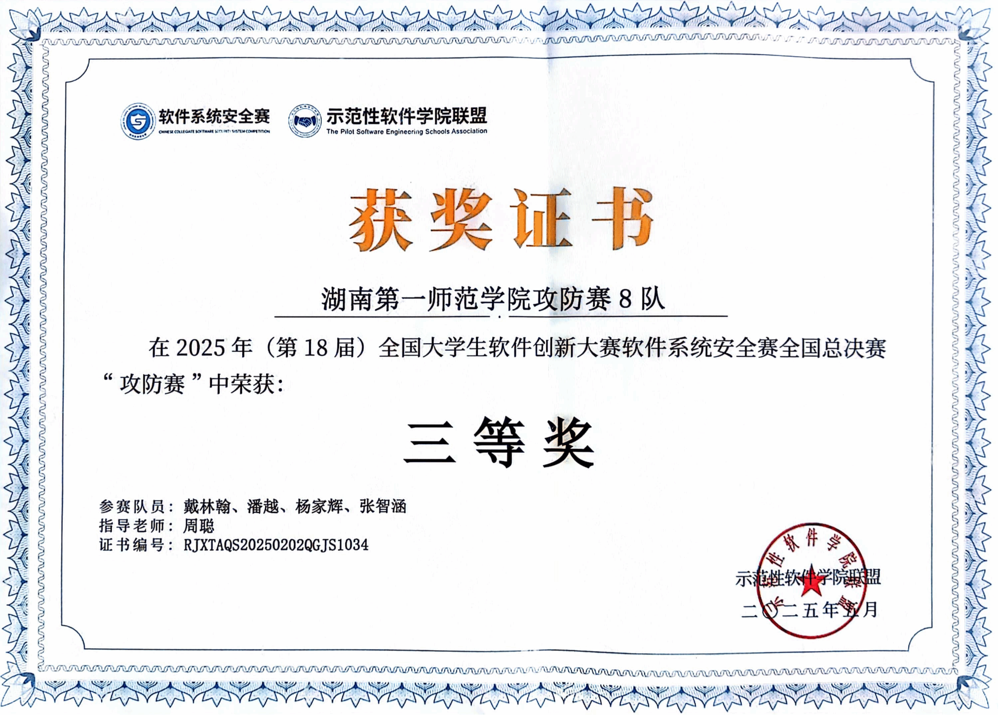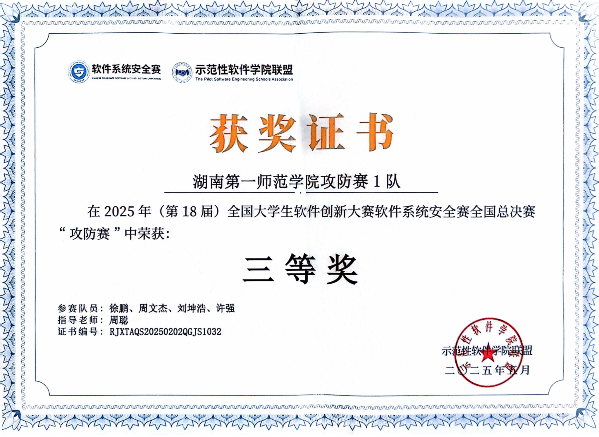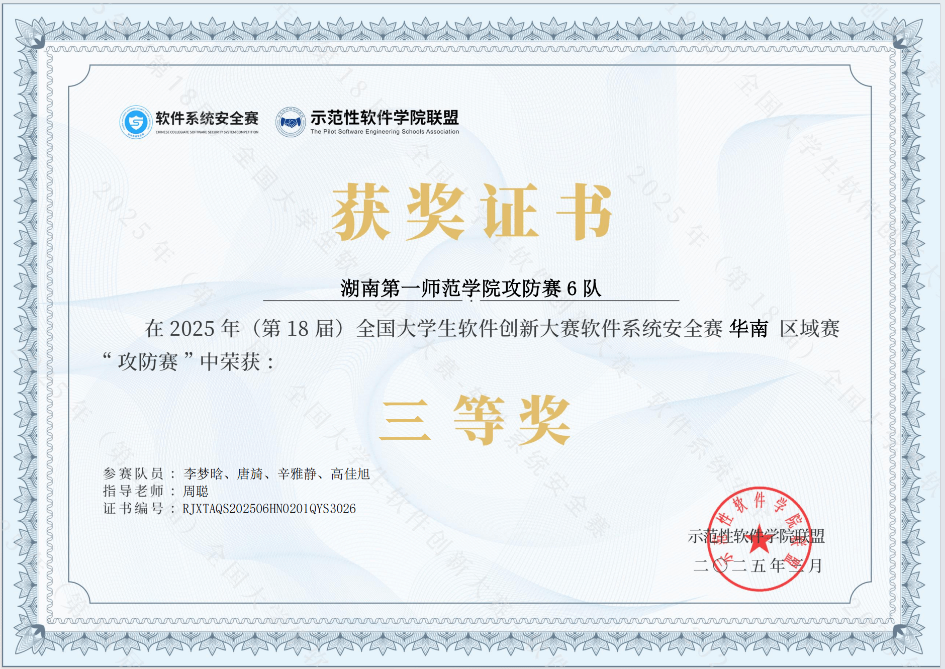 18届全国大学生软件创新大赛软件系统安全赛全国总决赛于2025年5月18日在湖南大学圆满落幕。湖南高校共有18支团队获奖其中院的2支参赛团队荣获攻防赛三等奖,实现了网安竞赛团队在国家级赛事中获奖的突破。在区域赛阶段,beat365参赛团队表现出色,斩获一等奖2项、二等奖1项、三等奖3项,位居华南赛区前列。