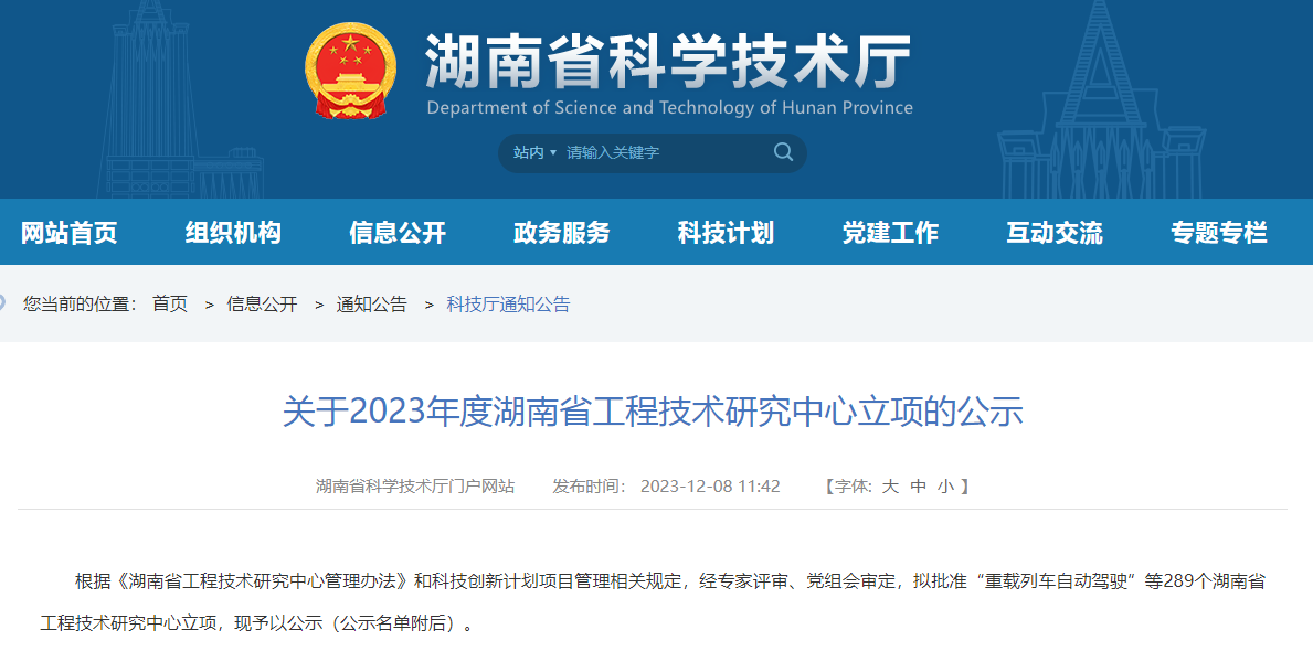近日,湖南省科学技术厅网站发布公示,根据《湖南省工程技术研究中心管理办法》和科技创新计划项目管理相关规定,经过专家评审和省科技厅党组会审定,我校与湖南航天信息有限公司联合申报的“湖南省国资国企信息安全工程技术研究中心”已获得批准立项。