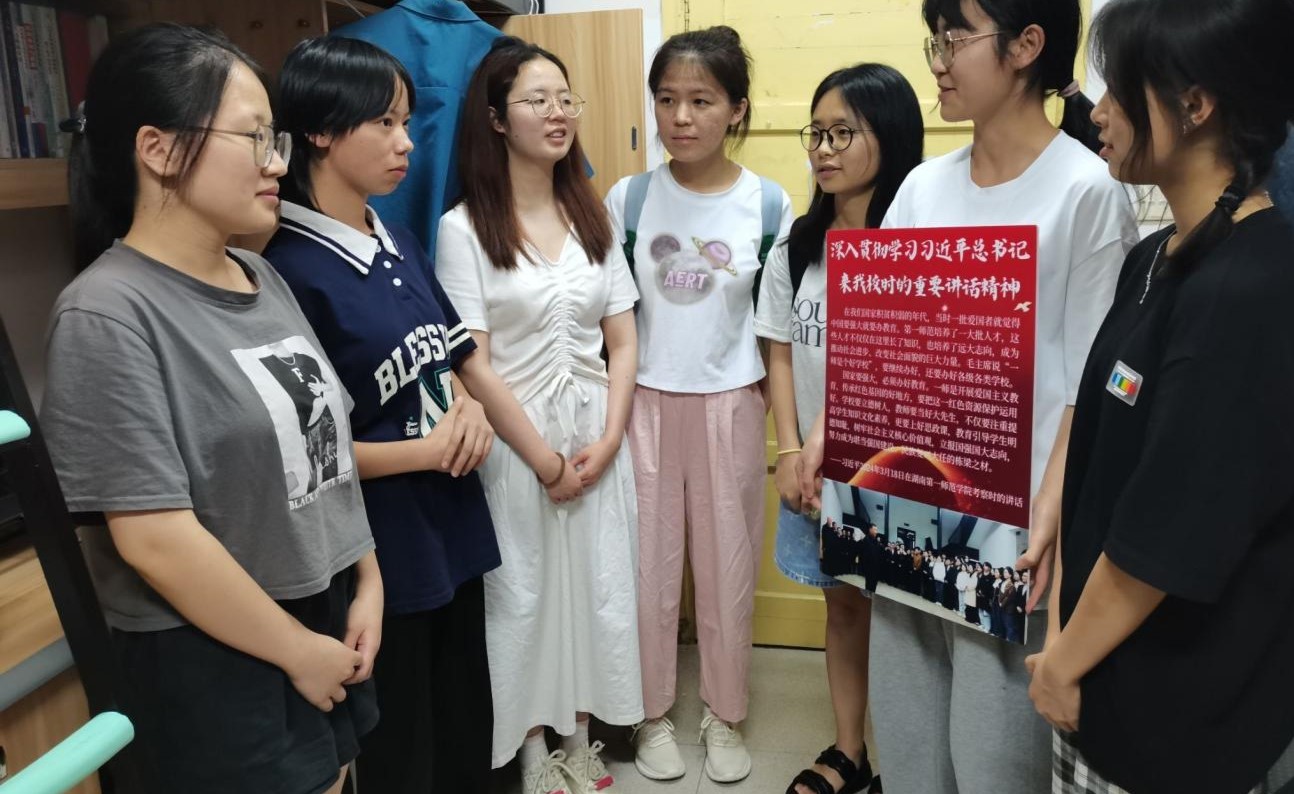红旗引领航向明,党员深解政策情。在寝室温馨氛围中,党员发展对象们详细解读了习近平总书记来我校考察时的讲话精神,阐述了中国特色社会主义文化的深厚底蕴,讲解了二十大精神的时代要义。思政小课堂不仅加深了同学们对党和国家大政方针的理解,更激发了大家积极投身学习实践的热情。作为新时代新青年,要认真学习习近平新时代中国特色社会主义思想,用思想之旗引领航向,秉持初心,勤奋学习,当好学院建设的主力军。