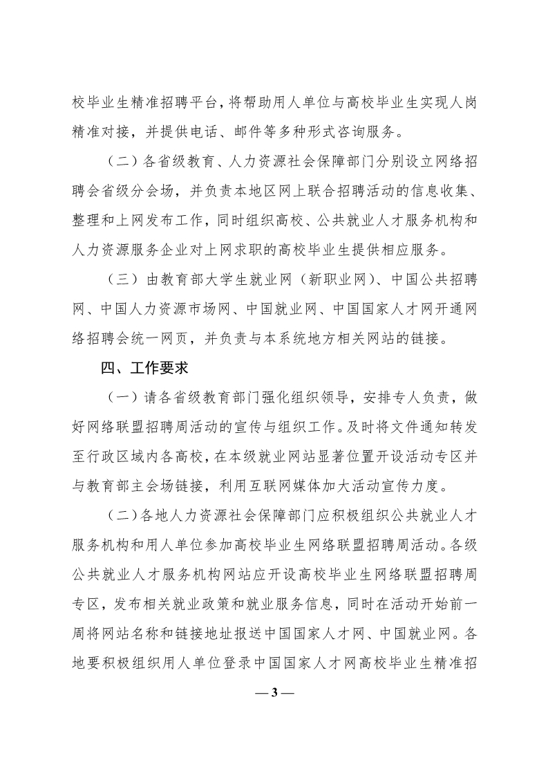 教育部办公厅 人力资源社会保障部办公厅关于举办2020年全国高校毕业生就业网络联盟招聘周活动的通知