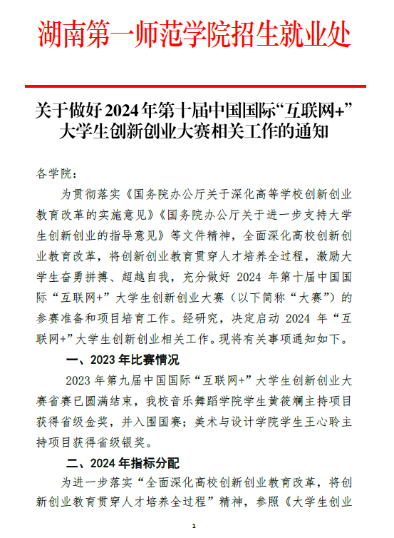 关于转发《关于做好2024年第十届中国国际“互联网+”大学生创新创业大赛相关工作的通知》的通知