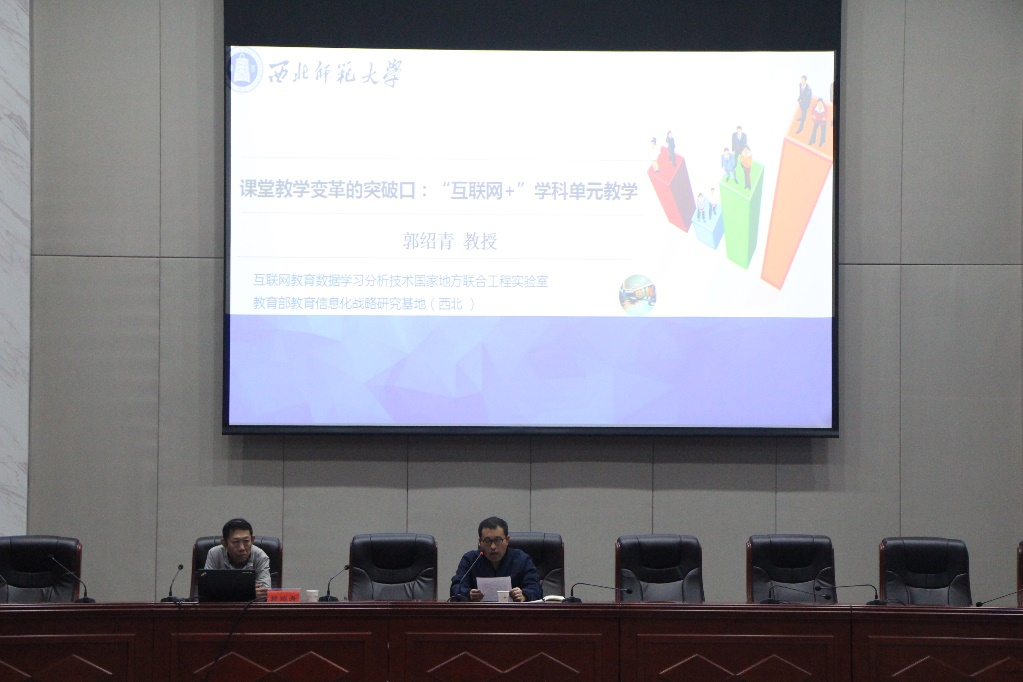 9月22日,西北师范大学智能教育研究院院长、互联网教育数据学习分析技术国家地方联合工程实验室主任、博士生导师郭绍青教授应邀来beat365在百熙楼228会议室开展学术讲座。我院全体教师、部分学生代表聆听了讲座,讲座由我院院长满君丰主持。